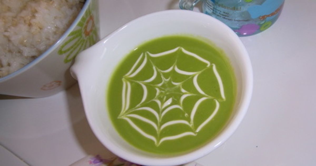 ハロウィン☆クモの巣グリーンピーススープ by ありんこキッチン